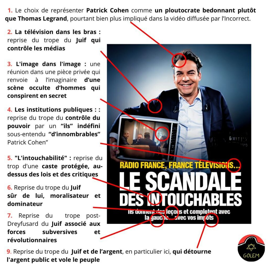 À l’occasion de son premier anniversaire, l’hebdomadaire du JDD associe dans sa Une le journaliste Patrick Cohen – qui fait régulièrement l’objet d’attaques antisémites virulentes à cause de son nom de famille – à tous les tropes et stéréotypes antisémites classiques :