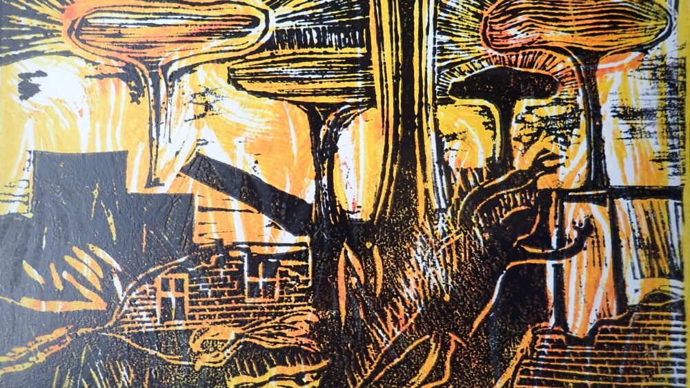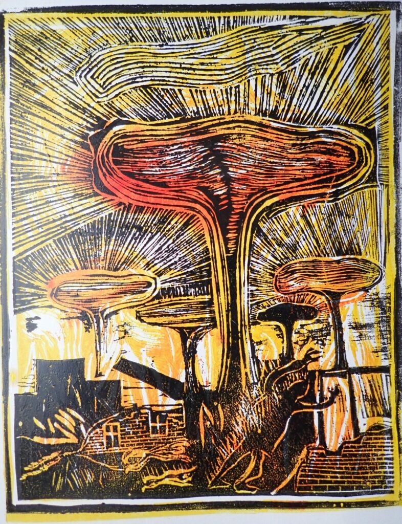 Conception de la guerre nucléaire. Coupe double linoléum. Mikael Hertoft, env. 1990.