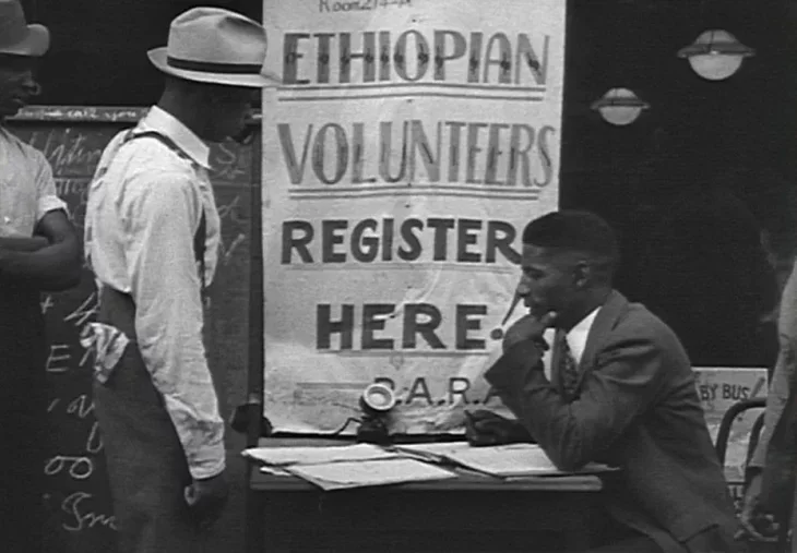 Ce n’est pas un souvenir très glorieux – ce qui explique peut être pourquoi cet épisode historique reste largement méconnu – mais en 1935, les partis communistes du Komintern et une bonne partie de la gauche de la planète, refusent de soutenir militairement la résistance éthiopienne contre l’agression coloniale italienne (sans parler ici, de ceux qui soutiennent alors l’agression à grande échelle, au nom de la « civilisation » ou des intérêts italiens sur place).
